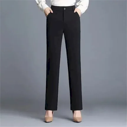 Women’s Dress Pants Pants Trousers Straight Fashion Streetwear Full Length Mid Waist Plain Pocket Breathability Comfortable Micro-elastic Street Daily Wear Going out Black Spring Fall Regular Fit