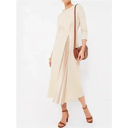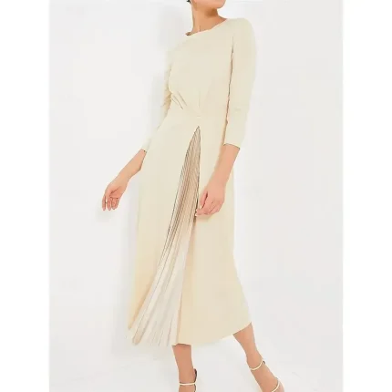 Women’s Midi Dress A Line Dress Elegant Stylish Basic Vacation Party Work Regular Fit Plain 3/4 Length Sleeve V Neck Apricot Spring Fall
