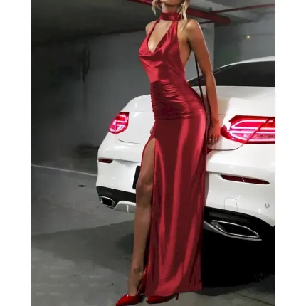 Women’s Long Dress Maxi Dress Black Dress Prom Dress Party Dress Cocktail Dress Elegant Fashion Modern Party Special Occasion Evening Party Regular Fit Plain Sleeveless V Neck Black Champagne Red
