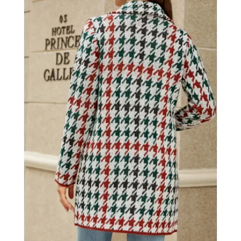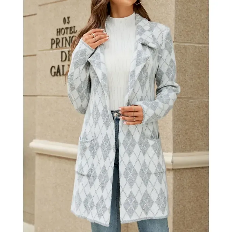 Women’s Blazer Comfortable Pocket Casual Plaid Vacation Street Going out Weekend Long Turndown Regular Fit Long Sleeve Outerwear Khaki Light Grey Dark Gray Fall Winter