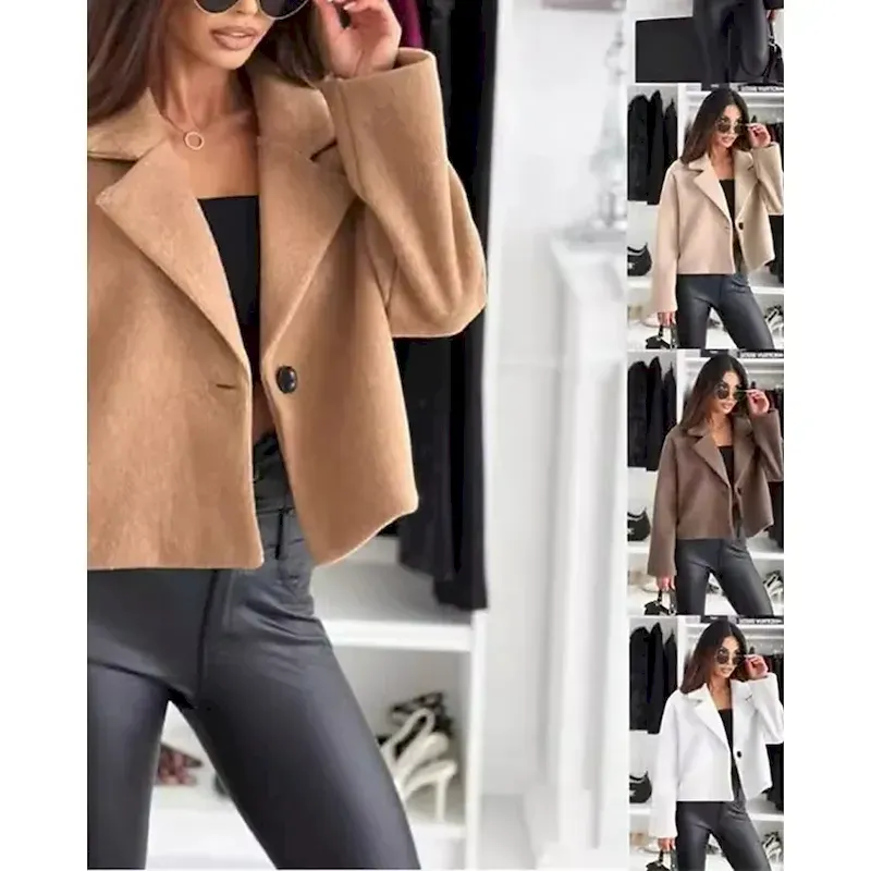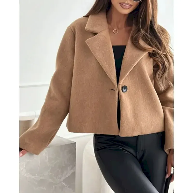 Women’s Casual Jacket Warm Comfortable Buttons Fashion Outdoor Plain Going out Weekend Single Breasted Regular Lapel Regular Fit Long Sleeve Outerwear Black White Khaki Fall Winter
