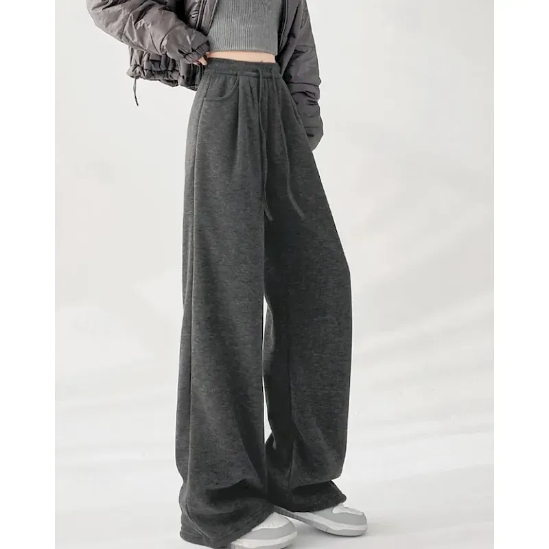 Women’s Culottes Wide Leg Chinos Casual Full Length Mid Waist Plain Pocket Elastic Drawstring Design Thermal Warm Stretchy Vacation Street Holiday Dark-Gray Apricot Black Winter Loose Fit