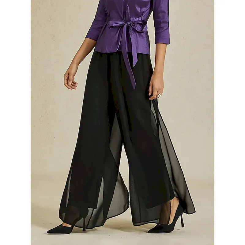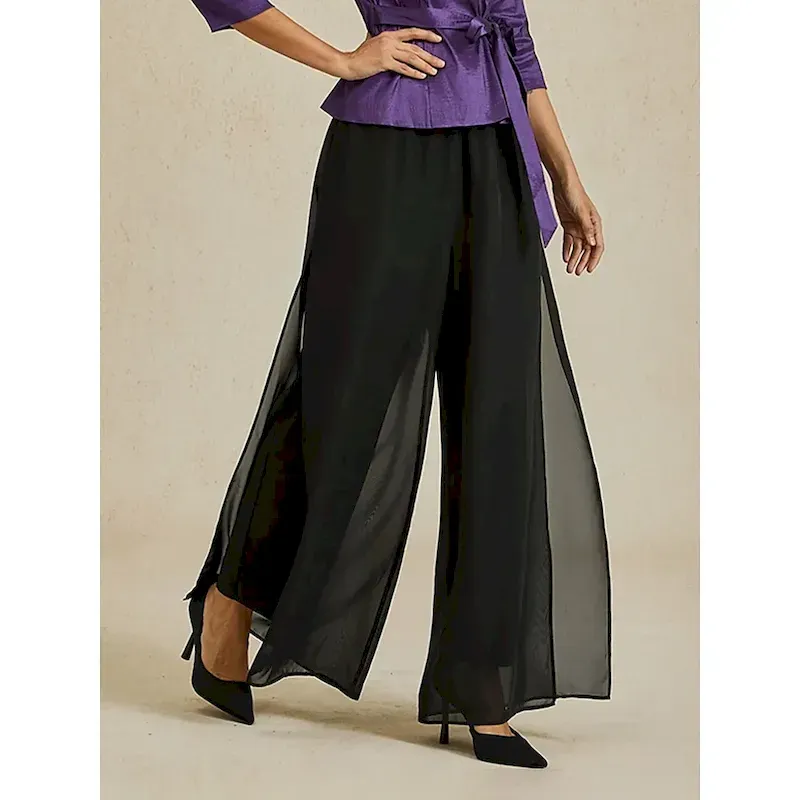 Women’s Culottes Wide Leg Straight-Leg Trousers Elegant Stylish Classic Style Full Length Medium Waist Solid Color Elastic Waist Stretchy Wedding Vacation Party Black Spring, Fall, Winter, Summer