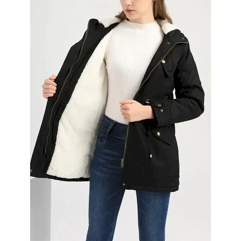 [Style and Details]: The jacket boasts a practical design with a teddy coat and hoodie jacket style for added charm. It includes adjustable elements, such as snap-button cuffs and a cozy hood, ensuring adaptability to your comfort needs and personal style.
