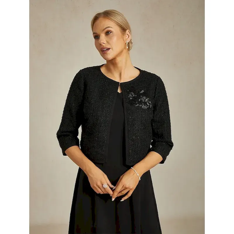 Women’s Jacket Trench Coat Warm Beaded Elegant Formal Party Wedding Guest Work Short Crewneck Regular Fit Long Sleeve Outerwear Black Spring Fall