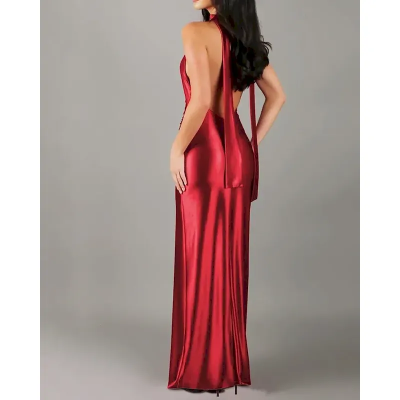 – Perfect for parties and special occasions- Features a trendy split design- Flattering V-neck neckline for a stylish look