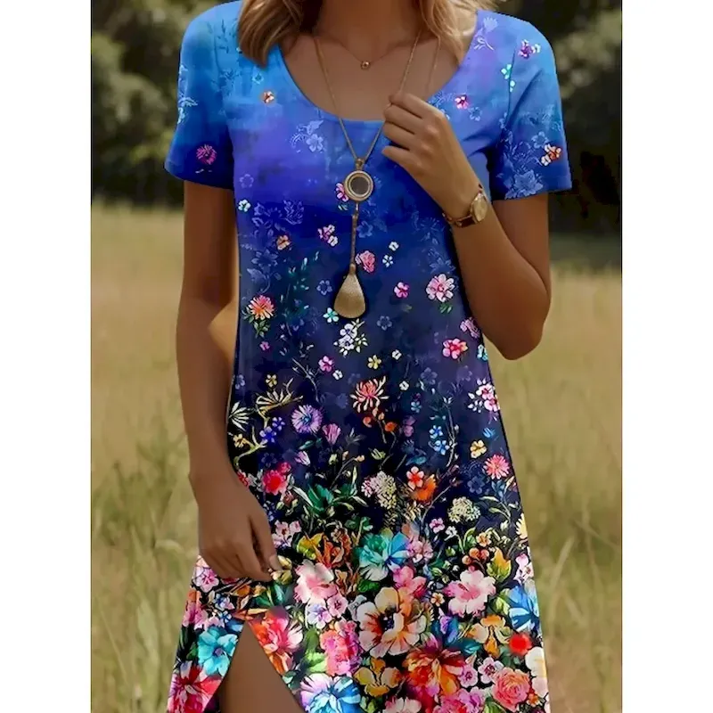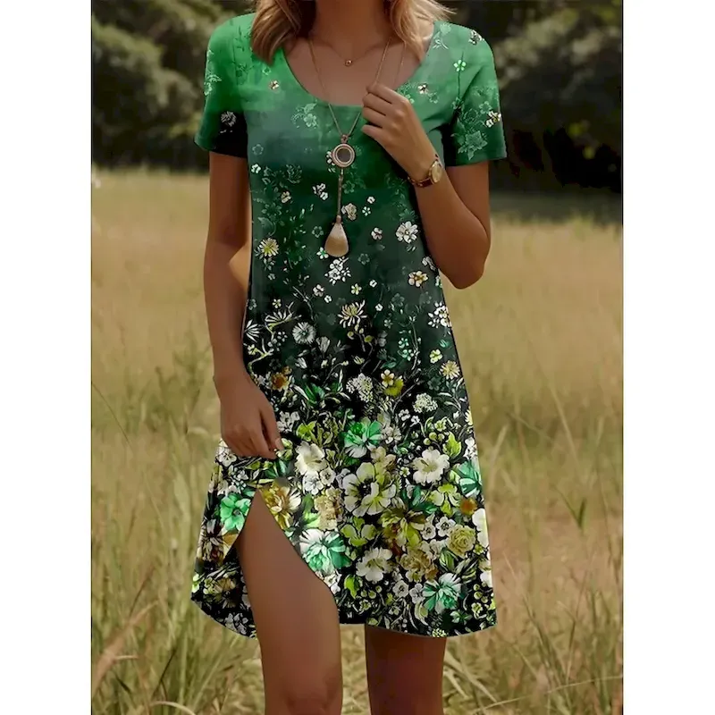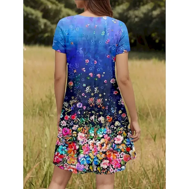 Women’s Mini Dress A Line Dress Elegant Vintage Stylish Daily Regular Fit Floral Graphic Short Sleeve V Neck White Red Blue Emerald Green Summer Spring