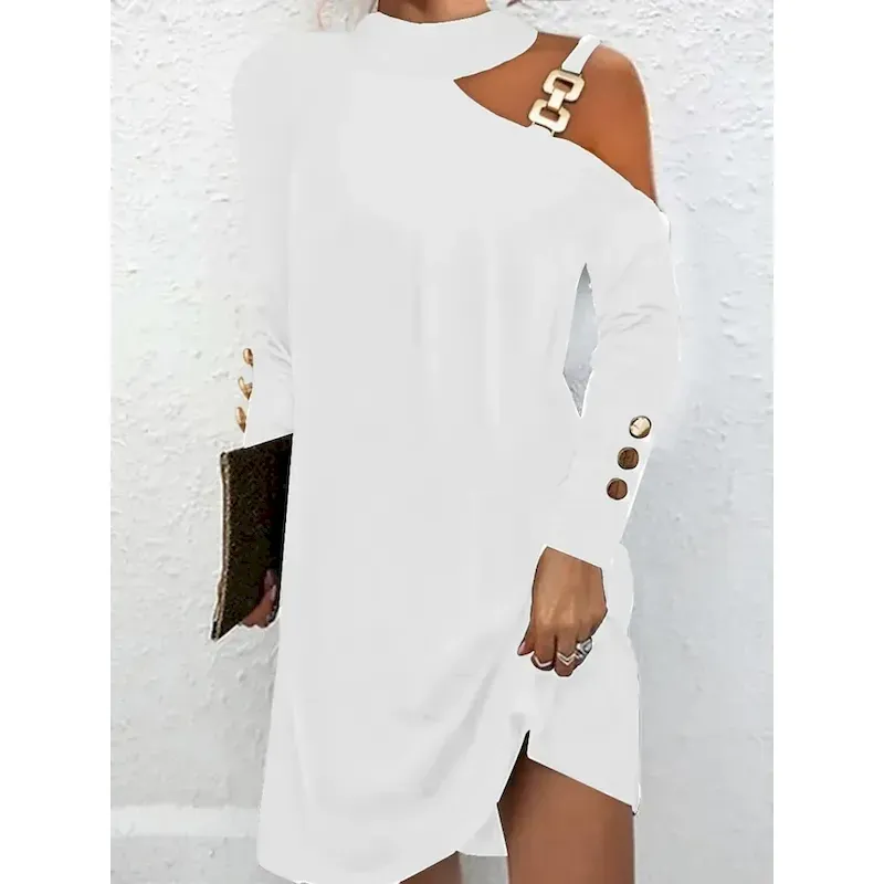 Women’s Mini Dress Sheath Dress Casual Daily Regular Fit Plain Long Sleeve Halter Neck Black White Pink Blue Summer Fall