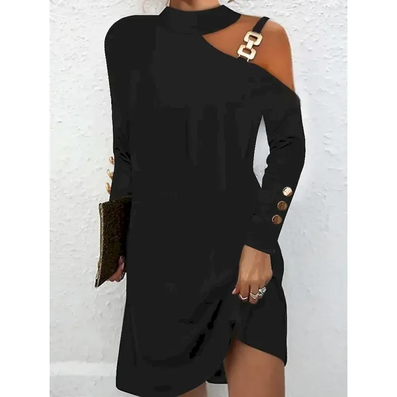 1.Dresses Type: Sheath Dress2.Fabric: Polyester3.Gender: Women’s4.Design: Patchwork5.Occasion: Daily6.Style: Casual7.Dress Length Type: Mini Dress8.Neckline: Halter Neck9.Sleeve Length: Long Sleeve10.Season: Summer Fall