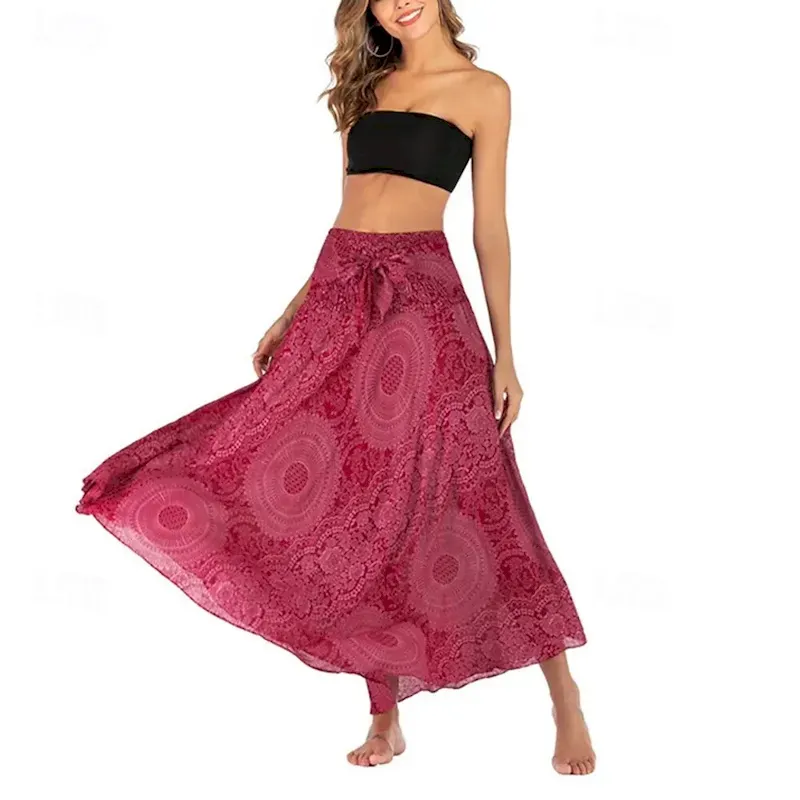 1.Design: Print2.Elasticity: Micro-elastic3.Waistline: High Waist – high waist to elongate the leg,4.Dress Length: Maxi5.Pants Type: Swing